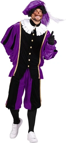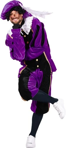Een mooi pietenpak in het met glanzende knopen en gouden details!