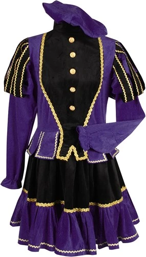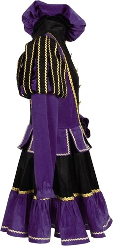 Erg prachtig paars pietenpak voor dames (inclusief paarse baret (zonder veren))! Dit gave pietenpak is gemaakt van polyester fluweel, waardoor het kostuum goed zit en fijn aanvoelt. Naast deze paarse variant zijn ook andere mooie kleuren verkrijgbaar. Let op: het kostuum valt groot uit.