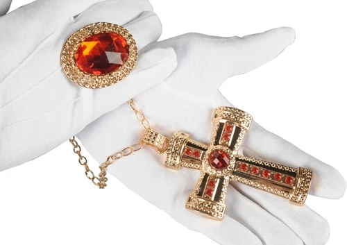 Erg mooie sieraden set voor Sinterklaas. De set bestaat uit een ring en een kruis. De set is ideaal om je Sinterklaas kostuum compleet te maken.