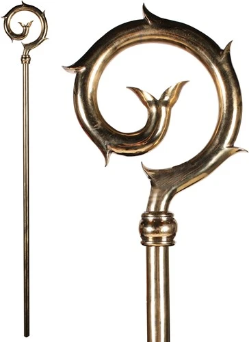 Een luxe staf met een prachtige krul aan de bovenkant. Deze staf bestaat uit 2 delen en is geïnspireerd op de staf van TV Sint Stefan