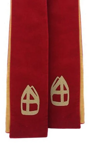 Een prachtige stola van kwaliteit. Deze sjaal is versierd met een gouden afbeelding van een mijter.