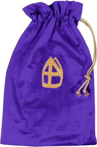 Een luxe strooizak in het paars. Op de voorkant staat een afbeelding van een gouden mijter. Dit handige strooizakje is circa 30x45cm groot en verkrijgbaar in meerdere kleuren.